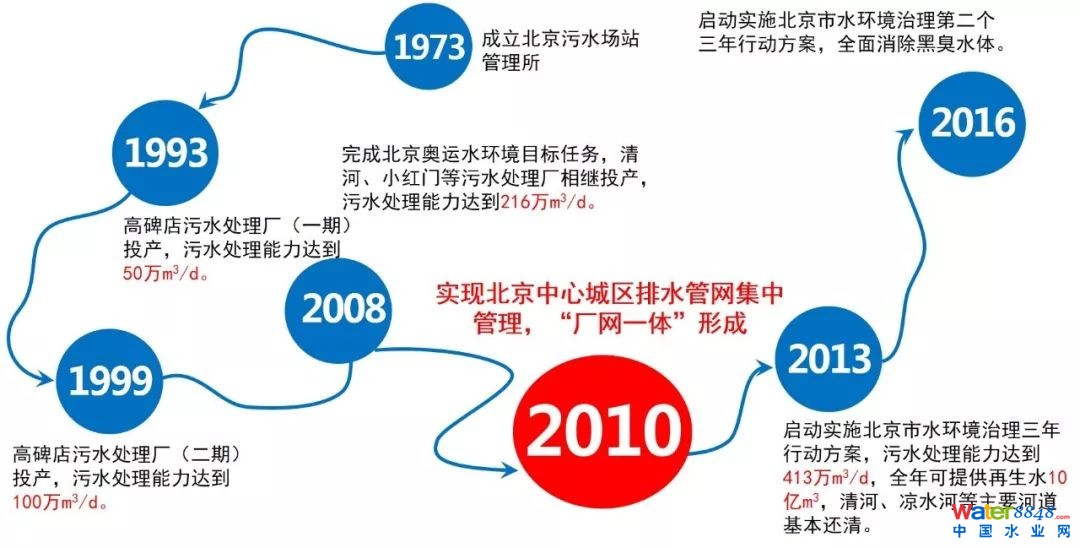 城鎮(zhèn)污水處理系統(tǒng)是由廠和網(wǎng)組成的有機整體。2010年前,北京市污水處理也存在管理比較分散的問題:硬件上,廠網(wǎng)設(shè)施存在缺口,而且廠和網(wǎng)難以銜接,存在污水直排、水體黑臭、城市內(nèi)澇等問題;軟件上,廠網(wǎng)多頭管理,管網(wǎng)由各行政區(qū)、市政工程處以及其他管線公司管理,存在不少管段沒有管理主體,雨污水收集、處理、回用等設(shè)施難以形成緊密聯(lián)動,突發(fā)情況的應(yīng)急處置也比較困難。