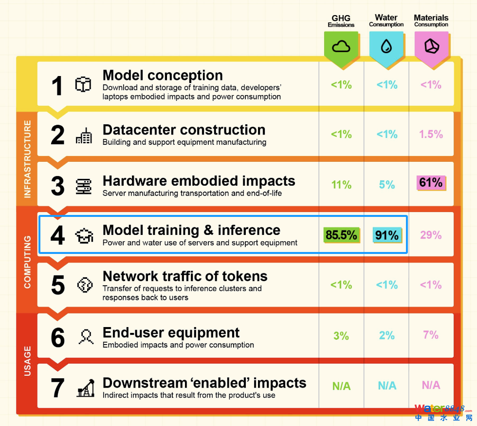 研究同時(shí)表明,在AI模型的整個(gè)生命周期中,訓(xùn)練和推理對(duì)環(huán)境的影響最大。據(jù)Mistral AI稱,該模型在這個(gè)階段排放的溫室氣體占比達(dá)85.5%,水資源消耗占比為91%。
